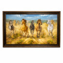 The Attic Ease Collection presents a contemporary equestrian oil on canvas depicting nine horses in motion across an open landscape. Executed in a confident palette-knife technique with substantial impasto, the work carries strong dimensional texture and movement.